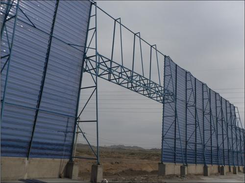 經(jīng)過擋風(fēng)板后的風(fēng)流,構(gòu)成紊流和渦旋氣流,但風(fēng)速、風(fēng)壓衰減較大與風(fēng)速成正比。因而風(fēng)速越大,防風(fēng)抑塵墻的抑塵功率越高防塵作用越好。